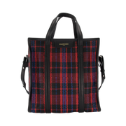 Bazar Shopper bag in multicoloured woven leather with red, black and blue tartan pattern and black lambskin leather, double zip fastening, double handle, removable shoulder strap.