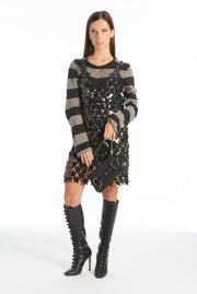 Designer Julien Dossena reworks a classic Paco Rabanne dress from the groundbreaking "Manifesto: 12 Unwearable Dresses in Contemporary Materials" collection. Made from star-shaped plastic links held together by bronze-colored hardware for a futuristic effect. Comes with a black underdress.